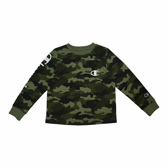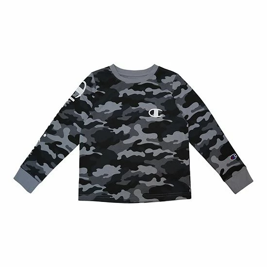 He’ll love this cool camo Champion boys’ tee with the classic “C” script.