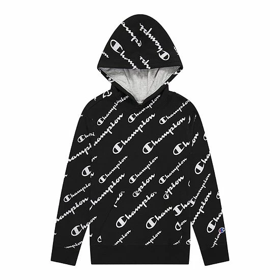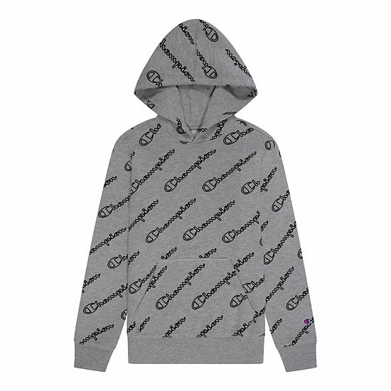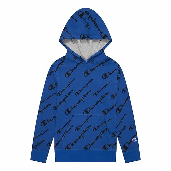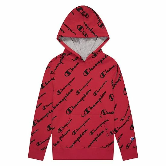 This boys’ Champion pullover hoodie calls for cool fashion with a “Champion” script pattern.