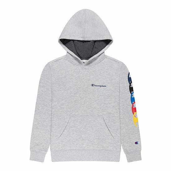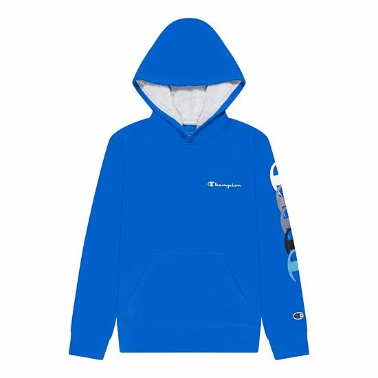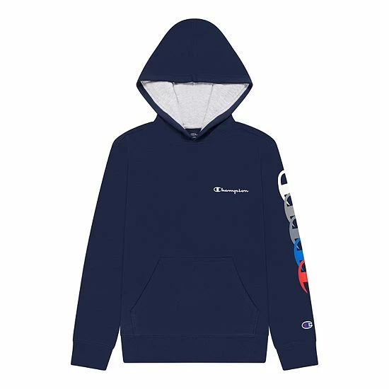 He’ll show off the Champion brand in the cozy fleece feel of this boys’ hoodie.