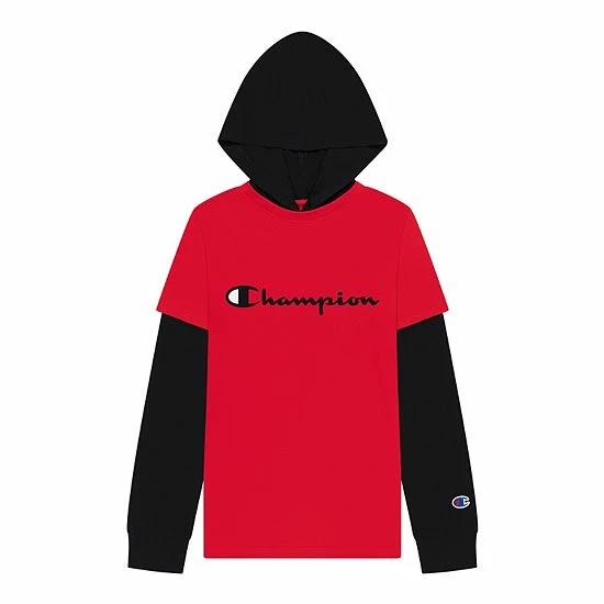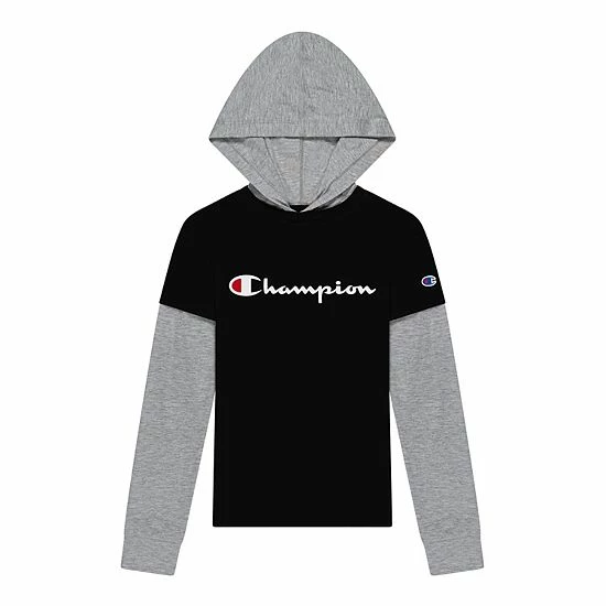 Layer on the Champion style with this boys’ hooded t-shirt.