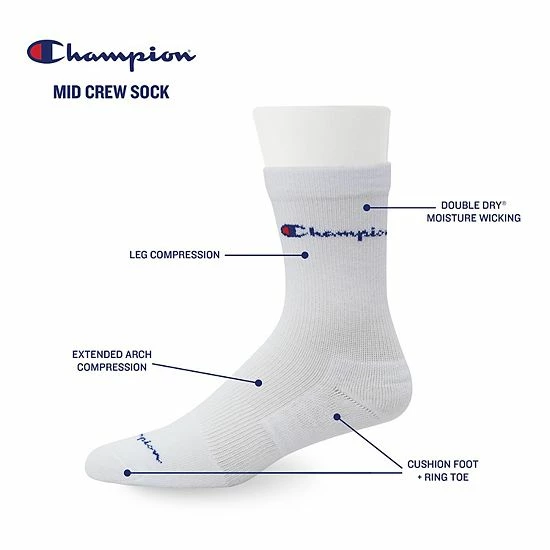 Step up your game in these men’s Champion compression mid-crew sport socks.