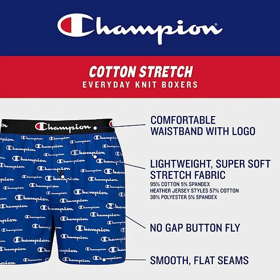 Stay comfortable undernth it all with these men’s Champion knit boxers.