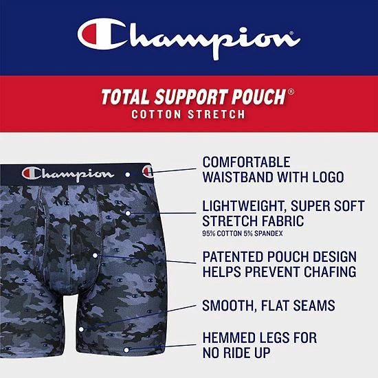 Stay comfortable all day long with these men’s Champion stretch boxer briefs.