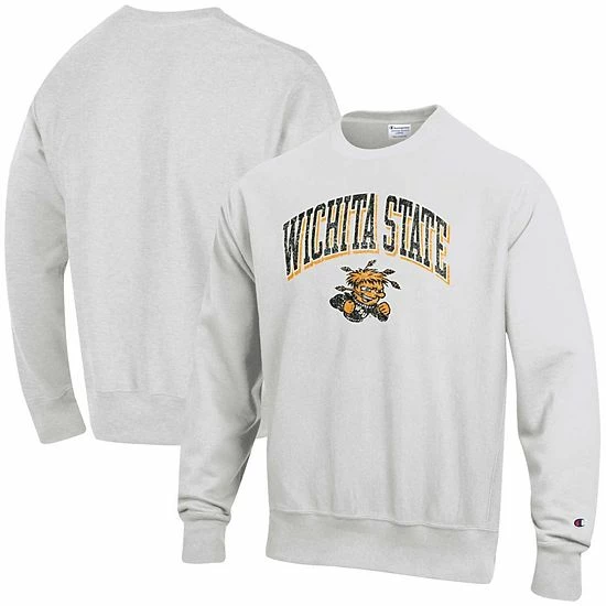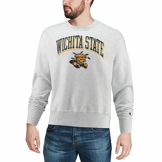Give your Wichita State Shockers fandom a boost when it’s cold out by wearing this Champion Arch Over Logo reverse weave pullover sweatshirt.