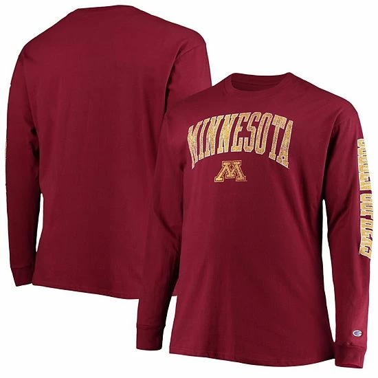 Enjoy a double dose of Minnesota Golden Gophers spirit with this bold 2-Hit T-shirt from Champion. It features a bold Minnesota Golden Gophers graphic across the chest and along the sleeve as well as a comfortable fabric blend that makes this top a great addition to any casual getup. Reach for this shirt when you want added coverage that’s ideal for a layered look.
