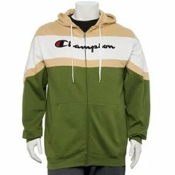 Big & Tall Champion® Colorblock Full-Zip Hoodie Olive White Khaki