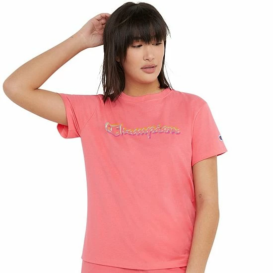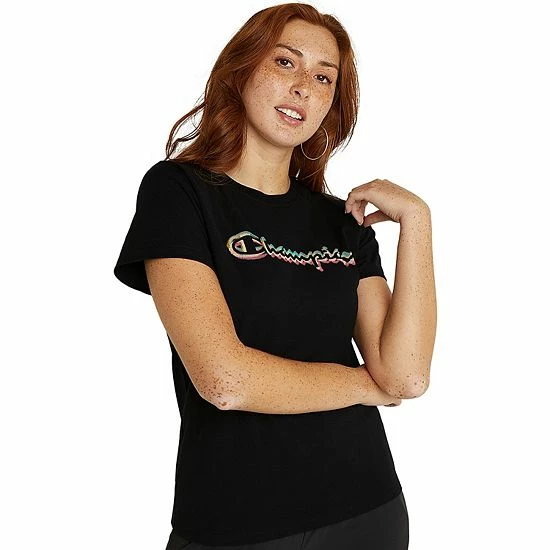 This women’s Champion graphic tee is just right for any activity.