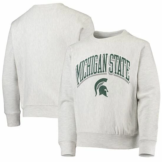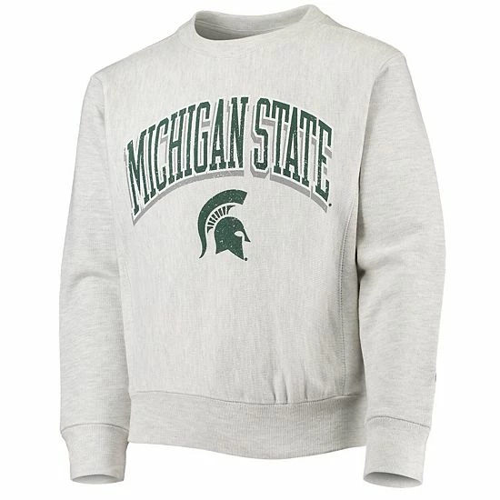 Your young fan is always looking to support their Michigan State Spartans, even in cooler weather. This midweight Reverse Weave pullover sweatshirt from Champion is the perfect fit, featuring flatlock stitching and a fleece lining for added warmth. The distressed Michigan State Spartans graphics also give it a cool vintage look that any fan would love.